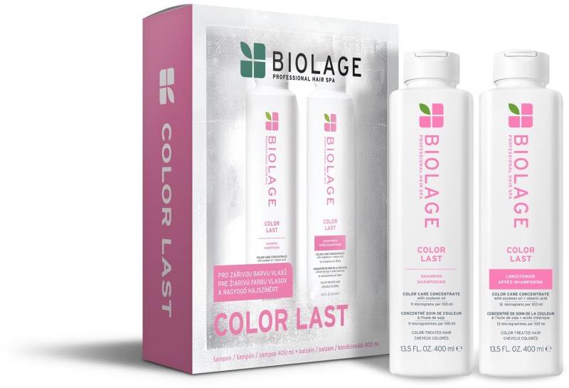 Biolage Essentials ColorLast, , Kozmetika szettek nőknek, A szett tartalma:Biolage Essentials ColorLast sampon festett hajra 400 ml Biolage Essentials ColorLast kondicionáló festett hajra 400 mlTulajdonságok: festett hajra meghosszabbítja a szín tartósságát intenzívebbé teszi a hajszínt ragyogó fényt ad a hajnak Összetétel: vegán termék Használata: A kozmetikai szett minden egyes termékét az adott termék útmutatója szerint használja.