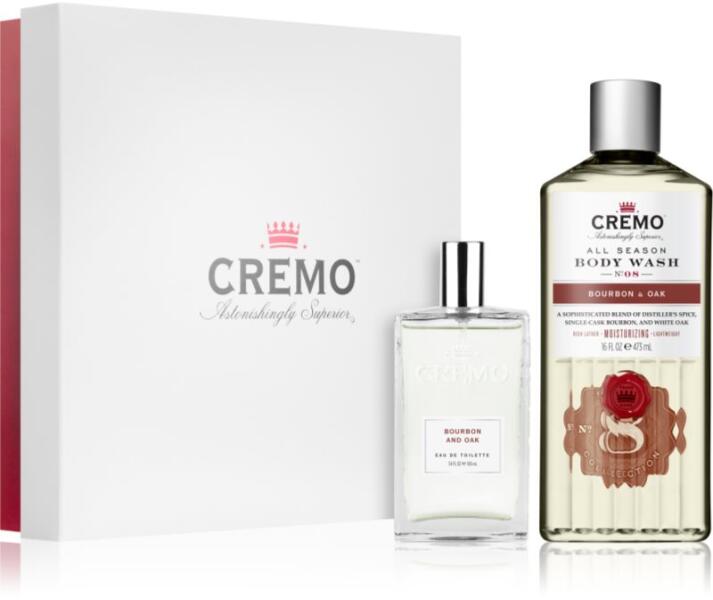 Cremo Set Bourbon and Oak, 1 , Férfi-testápolási szettek férfiaknak, Szerezzen örömöt a férfi testápoló készítményekkel teli CremoSetBourbon and Oak kozmetikai készlettel. Minden külsejére adó modern férfi örül neki. Tulajdonságok: minden férfinak örömöt szerez speciálisan a férfi bőr szükségleteire kifejlesztett készítmények melengető illat, ideális hideg időben fás illat aktív életet élő, mindig energikus férfiaknak mindennapos viseletre alkalmas illat A szett tartalma:fürdőgél férfiaknak 473 mlEau de Toilette 100 ml
