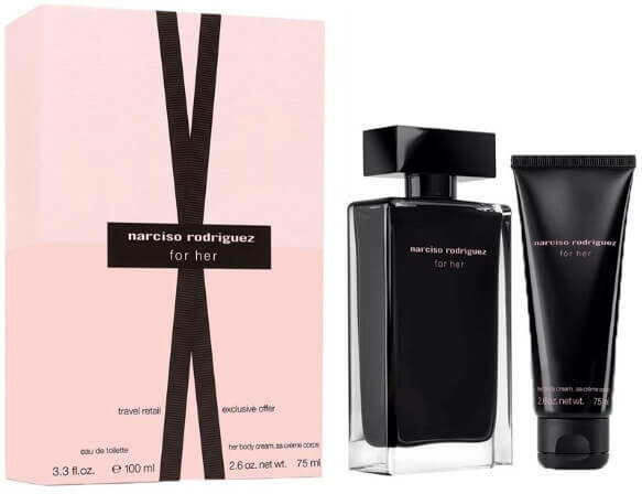 A Narciso Rodriguez For Her EDT egy virágos-fás illat nőknek. A fejillatban egy jellegzetes (osmanthus), afrikai narancsvirág és friss bergamott illat kompozíció érezhető. A szívillatban a pézsma és a meleg borostyán kombinációja rejtőzik. A kompozíciót a vetiver, vanília és pacsuli illatjegyei zárják. Az illat 2003-ban került a piacra.