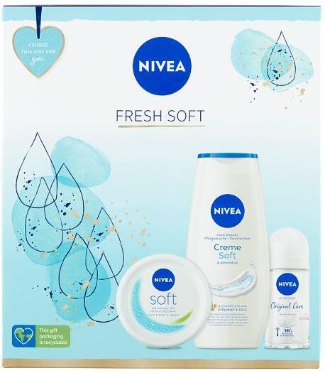 Nivea Fresh Soft ajándékcsomag hidratált és illatos bőrre (tusfürdő 250 ml, krém 100 ml, roll-on 50 ml)