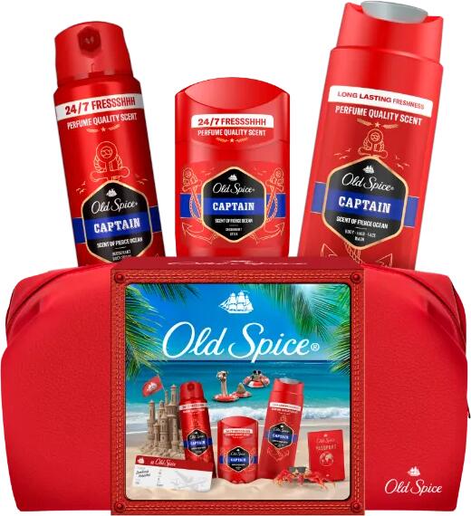 Old Spice Captain Ajándékszett Kozmetikai Táskában Stift Dezodorral, Spray-vel és Tusfürdővel
