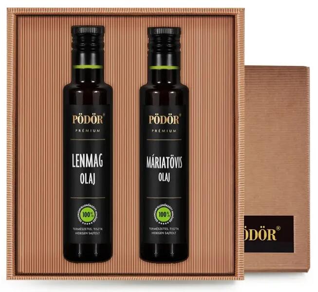 A praktikus és elegáns csomagolású, hidegen sajtolt olaj-duó kiváló ajándék-alternatíva az egészséges életmód követői számára!