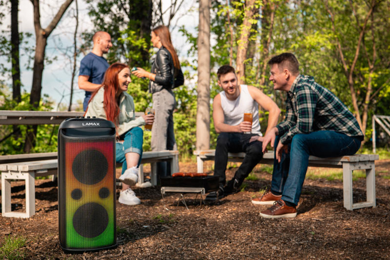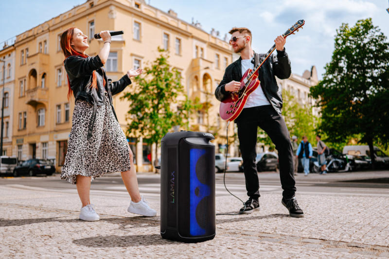 A LAMAX PartyKing1 Max nem csak a hangról és az erőről szól; a támogatott formátumok széles skálájáról (MP3, WAV, FLAC, AAC) és a sokféle csatlakozási lehetőségről is szól (mikro SD, USB-A, AUX bemenetek mikrofonokhoz és gitárokhoz). Csatlakozzon különféle eszközökhöz a legújabb Bluetooth 5.3 használatával. Ha pedig nincs lejátszási lista, egyszerűen hangoljon az FM-rádióra. Szeretné kipróbálni magát a gyártásban? Nincs mit. Fogja meg a hangszóróhoz mellékelt vezeték nélküli mikrofont, aktiválja a karaoke módot, és már kész is. A felvételi funkcióval teljesítményét megörökítheti az utókor számára, és a 8 állítható LED-effektus fényében igazi sztárnak érzi magát.