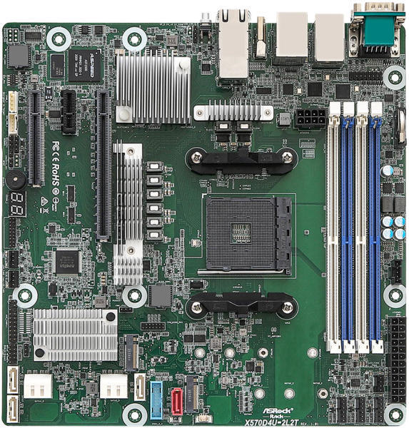 ASRock Rack (X570D4U-2L2T) ASRock Server motherboard X570D4U-2L2T, 1 x SKT AM4, AMD Ryzen, X570, SATA, 2xM. 2, 2xGbE, 2x10GbE, IPMI