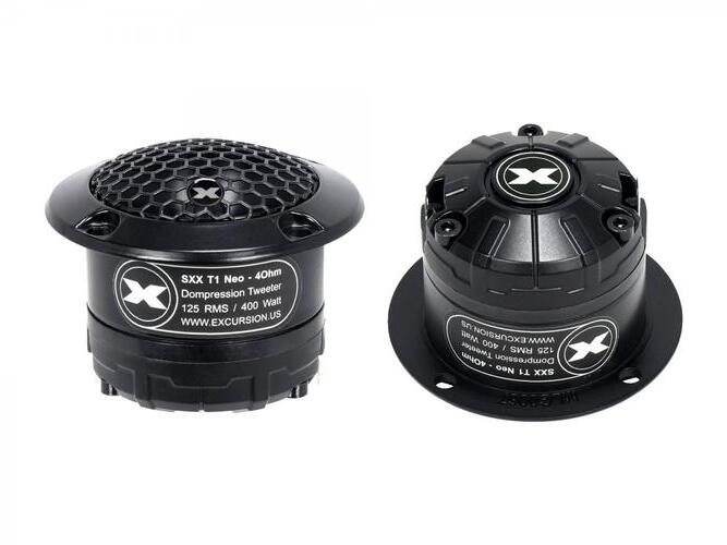 SQ-SPL autós magassugárzók (tweeterek), 60 mm külső átmérővel az SXX Street Xenon PRO AUDIO sorozatból, a német Excursion márkától. 26 mm-es alumínium membránjuk, neodímium mágneses rendszerük, magas hatásfokuk (sikeres működésük) és kiváló hangminőségük ideálissá teszi őket az SQ-SPL autós audiorendszerekhez. Az SXX hangszórókat elsősorban a hangos hangzás (SPL) igényes rajongóinak tervezték, miközben a lehető legmagasabb hangminőséget (SQ) is fenntartják. Alkalmasak SPL autós audioversenyeken és bajnokságokon résztvevők autóiban való használatra is, kiváló kiegészítőjeként a több nagy teljesítményű mélynyomót használó audiorendszereknek. Kiválóan alkalmasak bemutató autókhoz (demo autókhoz) is, amelyeket a nagyközönségnek mutatnak be szakkiállításokon, ralikon vagy egyéb rendezvényeken. Az Excursion SXX-T1 magassugárzókkal az Excursion SXX-M6 vagy SXX-M8 közép-mélysugárzók használatát javasoljuk.  ALAPVETŐ PARAMÉTEREK:Nagy hatékonyságú SQ-SPL autós magassugárzók.