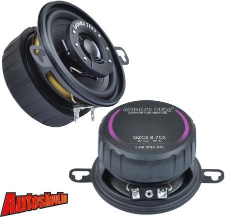 Ground Zero GZCS 8.7CX 8,7cm átmérőjű 2 utas koaxiális hangszóró, 50W folyamatos terhelhetőségű. Car Specific sorozat: Super dóm magassugárzó, bevont papír kónusz, acél kosár, egyszerű szerelhetőség.