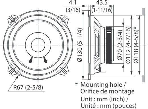 Név Kenwood KFC-S1356 13cm-es 1 utas hangszóró Gyártó Kenwood Típus 13 cm középsugárzó Felépítés13cm -es 1 utas hangszóró Magassugárzó- Mélysugárzó Polipropilén membrán RMS teljesítmény 30W Csúcsteljesítmény 260W Frekvenciamenet 45-18.000 Hz Impedancia 4 (Ohm) Érzékenység 89dB / W (1m) Egyéb - Méretek Beépítési átmérő: 112 mm