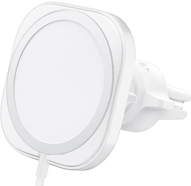 Autós tartó, szellőzőre rögzíthető, 360°-ban forgatható, mágneses, Magsafe töltőkkel kompatibilis, Spigen MagFit, fehér