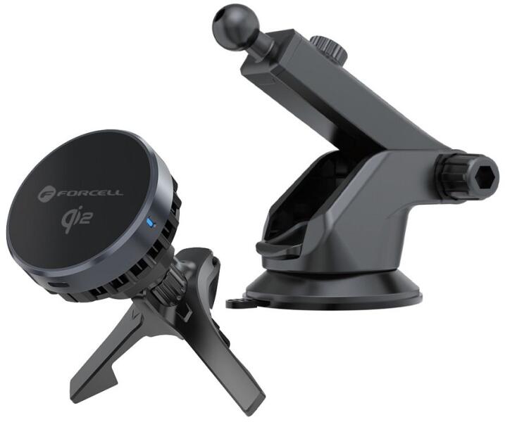 Forcell F-GRIP Cool Mag autós telefontartó Cold Protect hűtési technológiával és Qi2 15W vezeték nélküli töltéssel, kompatibilis a MagSafe-fel, fekete - studioeszkozok