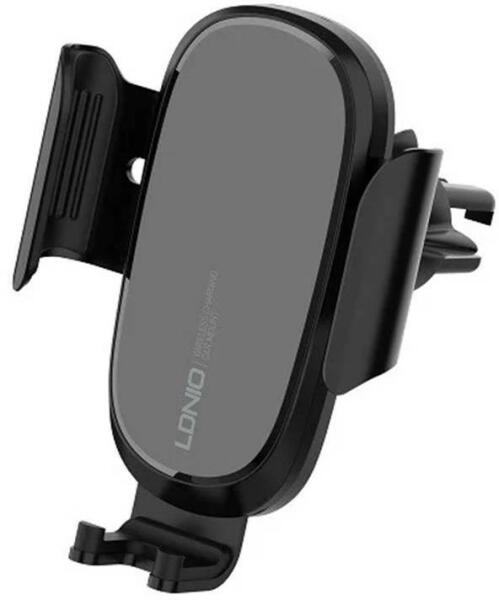 Ldnio autós tartó (szellőzőre, automata, 15w, wireless, pd gyorstöltő) fekete, gyártói csomagolás (INN-043114)