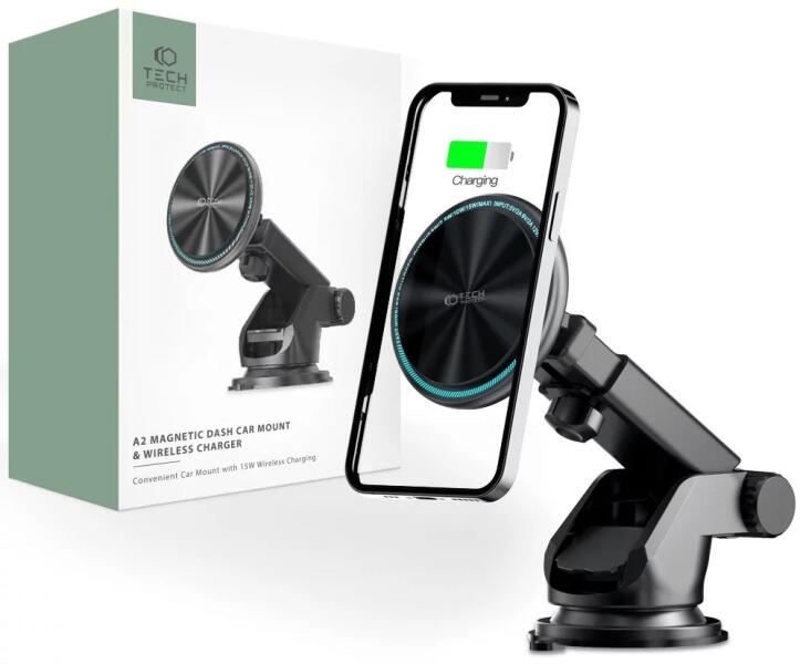 Tech-Protect A2 Fekete Autós tartó tapadókoronggal QC Magsafe 15W töltéssel, 926723