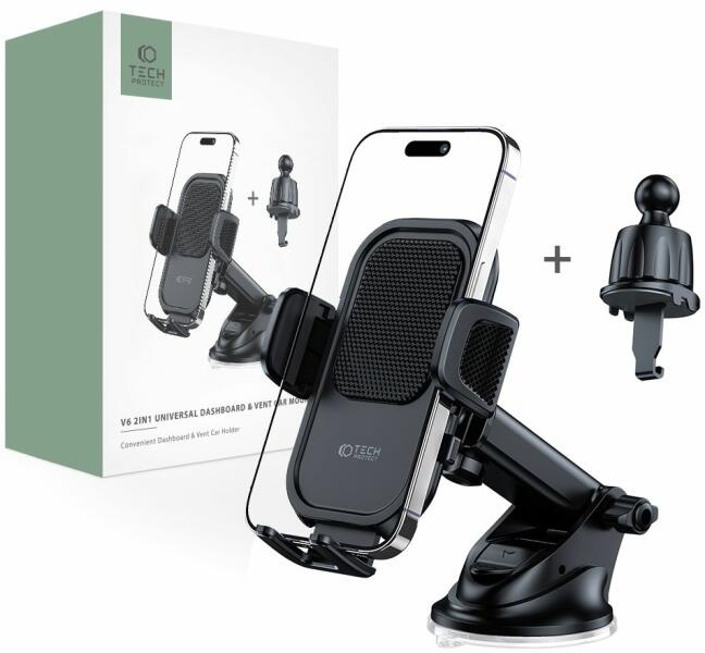 Tech-Protect V6 Autós Tartó - Tapadókorong + Szellőzőrács - Fekete (9490713935071)