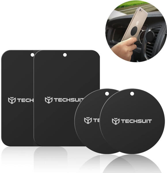 4 darabos szett: A csomag 2 darab téglalap alakú és 2 darab kerek, matt fekete fémlemezt tartalmaz, melyek biztosítják a kompatibilitást különféle eszközökkel és elhelyezési preferenciákkal.
