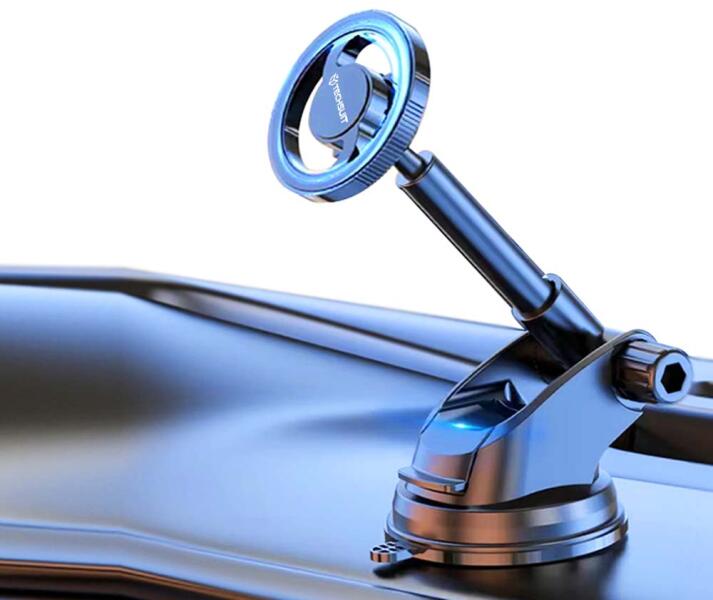Techsuit - MagProX (S12) autós tartó - Műszerfalra, MagSafe kompatibilis, 360°-os forgatás, tapadókorongos rögzítőtalp - Fekete