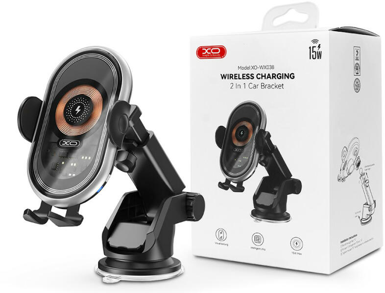 XO WX038 2in1 Wireless gyorstöltő 15W műszerfalra fekete (XO848720)