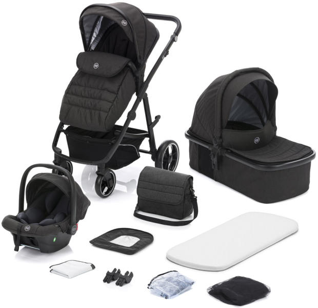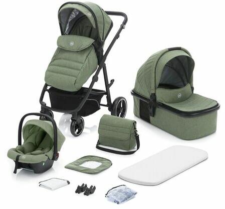 - modern design - autós hordozóval és adapterrel - mózeskosár kényelmes matraccal - pelenkázó táska pelenkázólappal - esővédő és szúnyogháló - 3 fokozatban állítható háttámla - lábzsák - állítható tolókar - mindkét irányba rögzíthető sportrész - 5 pontos biztonsági öv