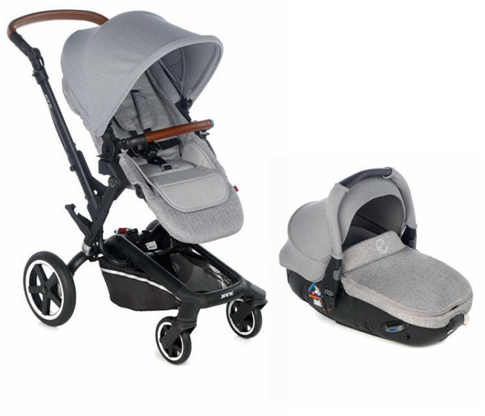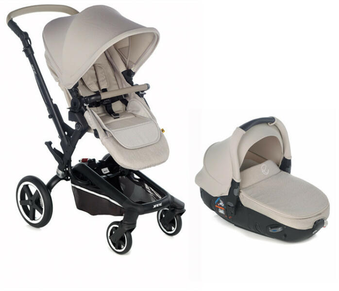 Jané Rider babakocsi + Matrix Light 2 mózes A Rider babakocsi a Jané kínálatának felsőkategóriás terméke, amivel minden téren kielégíti a leendő szülők elvárásait! A márkáról: A cég Barcelonában, 1932-ben hozta létre az újdonságnak számító teljesen összecsukható babakocsiját. Azóta természetesen sok más fejlesztéssel egészítette ki modelljeit és vezetett be új termékvonalakat. A minőséget folyamatos teszteléssel, vevőik ezreinek elégedettségével bizonyítja és dolgozik azon, hogy a kényelem és design párosítása mellett a biztonságot hozza el a családok számára! Figyelem!Jané termékeink készlethiány esetén előrendelhetőek. Ebben az esetben a várható beszerzési idő 2-6 hét, amelyről ügyfélszolgálatunk tájékoztat Téged! Természetesen ezt az időt próbáljuk lerövidíteni, hogy minél előbb kiszállíthassuk számodra a választott terméket! Jané Rider babakocsi + Matrix Light 2 mózes Kinek ajánljuk? Annak, aki valóban egy kiváló minőségű, modern szerkezetű és megjelenésű, csúcsminőségű babakocsit szeretne választani. Annak, aki szereti az egyedi megoldásokat és a korszakalkotó végeredményt egy babakocsi személyében. Jellemzői: 6 hónapos kortól 15 kg-ig használható. A Jané kínálatának felsőkategóriás terméke, csúcsminőség, egyenesen Spanyolországból. Az eloxált, karcmentes alumínium váz egyedi felépítése és összecsukása igazán figyelemreméltó. A szabadalmaztatott, innovatív összecsukási rendszer 30%-al csökkenti a babakocsi méretét, így nem kell aggódni a tárolás, szállítás miatt. Összecsukás során a 4 kerék befordul a váz alá, ezzel is egyszerűsítve a folyamatot. A kerekei tömör gumik, aminek köszönhetően mindenféle tereptípusra szívből ajánljuk! A babakocsi rugózása 2 fokozatban állítható, az út minőségétől függően. Háttámlája 3 fokozatban, majdnem teljesen vízszintesig dönthető. Sport része olyan magasan van a vázon, hogy nem kell aggódnunk, hogy a gyermeket a szmogos, kipufogógáztól telített szinten kell tolnunk. A sport rész szűkítőbetéttel ellátott, ami még jobban emeli a gyermek komfortérzetét és biztonságát. Hátulján egy praktikus kis zsebbel látták el. A könnyű, alumínium vázszerkezet mellett a légies megjelenését a geometriai formának és a nagy átmérőjű hátsó kerekeknek köszönheti. A kerekek biztosítják a gyors és kényelmes közlekedést. A hátsó felfüggesztés és a lengéscsillapítás miatt a baba számára még kényelmesebb, hiszen nem rázkódik nehezebb terepen sem. A hátul elhelyezkedő fordított C rendszer révén a megfordított vázon is elegendő hely marad a gyermek lábainak. Ez is növeli a Jané maga elé támasztott elvárásainak teljesítését! A vázrendszerre egy kattintással csatlakoztatható a mózes és a sport rész egyaránt, ami segíti a gyors és egyszerű használatot. A feltét megfordítható az ülésen, és olyan magas, hogy az étteremben nem kell kivennünk a babát, mert kényelmesen etethetjük magunk mellett, a babakocsiban. Anyaghasználata minőségi, légáteresztő és vízálló, hogy az év minden szakaszában tökéletes választás legyen, a gyermek első éveihez! Tartozékok: esővédő, pelenkázótáska Adatok: Babakocsi kinyitva: 85/110x60x93 Babakocsi ülőrész (szélességxmélységxmagasság): 30 x 23 x 53 cm Babakocsi összecsukva: 62x60x68 Babakocsi vázának súlya: 10 kg Matrix Light 2 mózessé alakítható hordozó: Innovatív megoldás a Jané kétfunkciós autóshordozója ultrakönnyű szerkezettel. Az egyetlen szabadalmaztatott mózes, ami hordozóvá alakítható, tehát fekvő és ülő pozícióban is használhatja a gyermek és mindkét funkcióban elhelyezhető az autóban. Strapabíró anyaga kiváló minőségű, légáteresztő és véd a szél és eső ellen, hogy minden évszakban a legnagyobb komfortot nyújthassa! 5 pontos biztonsági övvel van ellátva, ami ugyancsak forradalmi a hordozók körében. Két oldalán szellőző található. Vízálló, így minden időjárási körülménynek megfelel. Törésteszteken is vizsgált, ezzel garantálva, hogy a minőségi, a kényelmi és a biztonsági elvárásoknak is maximálisan megfelel. Extra fejvédelemmel kialakított. 0-13 kg között használható! Isofixes bázistalp vásárlása szükséges az autós használathoz. Ennek különlegessége, hogy forgatható, aminek segítségével az autóshordozó és a mózes is fixálható rajta. Mérete: 83 x 44 x 62 cm Súlya: 5,25 kg