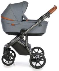 Nagy, kényelmes, kiváló minőségű, fektethető háttámlával szerelt mózeskosár.