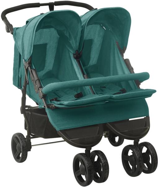 Ezzel a kényelmes ikerbabakocsival elviheti babáit sétálni a parkba, vásárolni stb. Az ikerbabakocsi acél vázzal rendelkezik, így masszív és tartós. A háttámla és a lábtámasz több pozícióba állítható, így maximális kényelmet biztosít gyermekei számára. A kerek tető megbízhatóan védi őket a közvetlen napfénytől. Emellett az elülső ütköző optimális biztonságot nyújt, megakadályozva, hogy kiessenek. A mellékelt praktikus kosár ideális a babaholmik tárolására. Az ikerbabakocsi a könnyű tárolás és szállítás érdekében összecsukható.