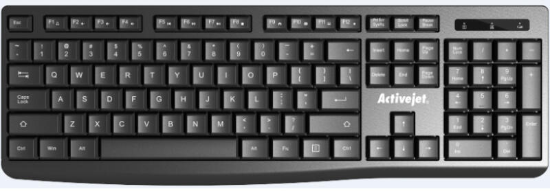 Activejet K-3803SW 104 gomb, RF vezeték nélküli, nemzetközi amerikai fekete billentyűzet
