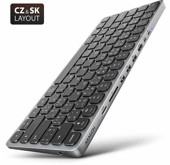 Axagon HMC-KB-CS, USB 5Gbps hub CZ/SK billentyűzettel, HDMI 4K/60Hz, 3x USB-A, SD/mSD, audió, PD 100W, USB-C kábel 60cm (HMC-KB-CS)