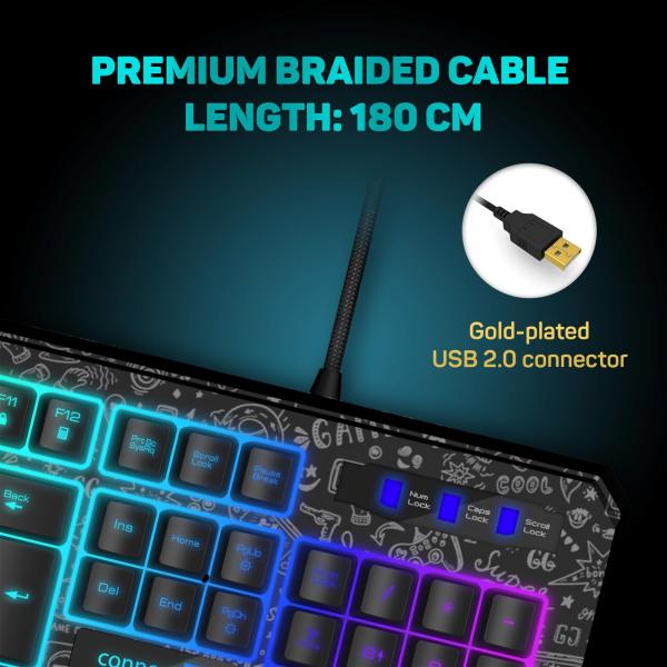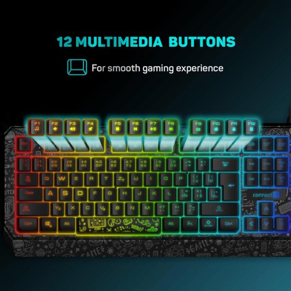 CONNECT IT DOODLE RGB háttérvilágítású játékbillentyűzet (CZ+SK verzió), USB, FEKETE Termékleírás: DOODLE RGB — Professzionális játékbillentyűzet DOODLE a számítógépes játékok játékosainak cseh és szlovák …