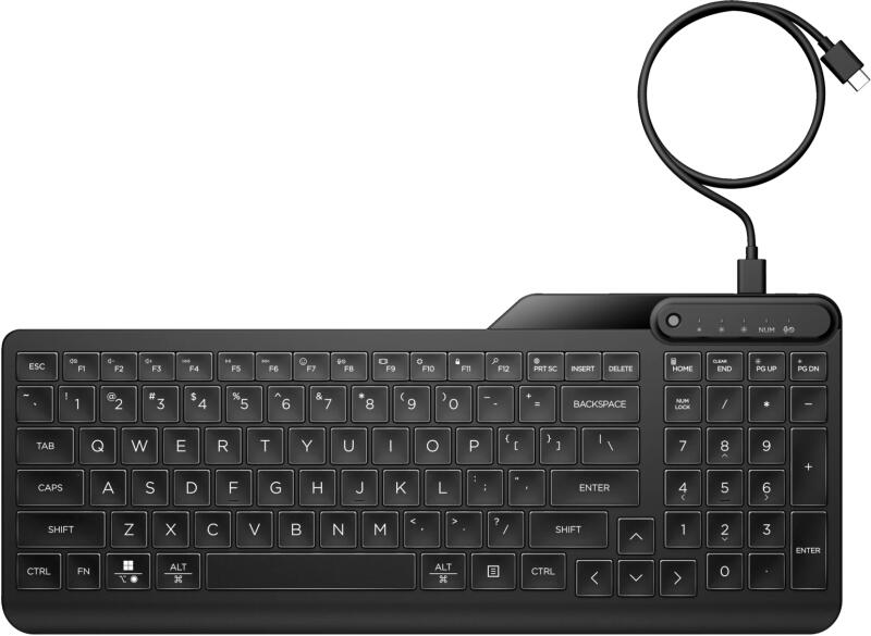 HP 247784 405 Multi-Device Backlit Wired Keyboard Black, Billentyűzet (7N7C1AA#AKC)