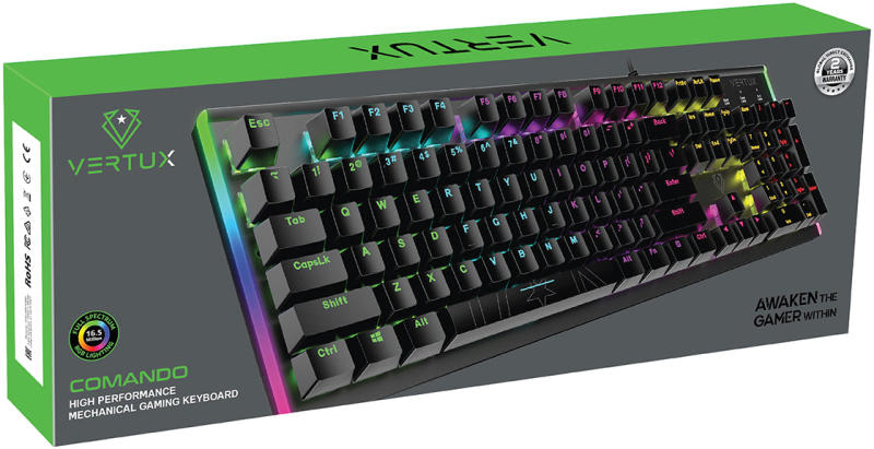 Vertux Billentyűzet - COMANDO (Vezetékes, Mechanikus, Full Anti-Ghosting, EN, RGB LED, alumínium, fekete)