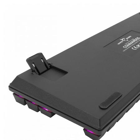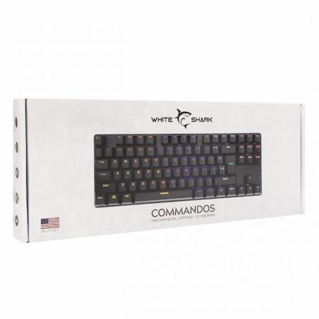 White Shark COMMANDOS Vezetékes mechanikus gaming billentyűzet, Kék kapcsoló, TKL, kompakt, 25 anti-ghosting gomb, Rainbow LED, 1.5 m fonott kábel, Fém talp, Fekete (SBX00212)