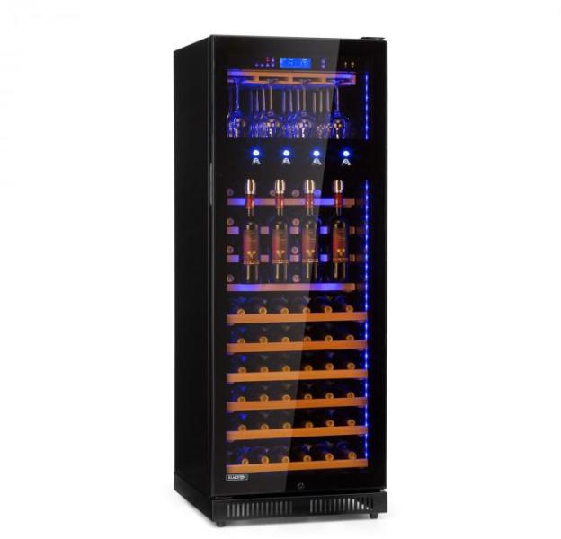 Bemutató és élvezet egyben: a Klarstein First Class 84 borhűtő italtöltővel ideális megoldás a gasztronómiában és a borkereskedésekben a bor csapolására tökéletes hőmérsékleten - megfelelő önkiszolgáló büfékbe is. Ahhoz, hogy a bor megőrizze az illatát a nyitott palackban az kell, hogy tökéletesen legyen hűtve - főleg akkor, ha pár órán belül nincs elfogyasztva. A  Klarstein First Class 84 borhűtővel az egyik poharat a másik után lehet megtölteni éttermekben, bárokban vagy borpincékben anélkül, hogy a bor veszítene a zamatából. A beépített csapoló automatára rögtön négy különböző palack bort lehet csatlakozatni légmentesen tekintet nélkül arra, hogy parafadugóval vagy csavaros kupakkal van lezárva. A kezelőkar segítségével szükség szerint töltheti meg a poharakat - ideális önkiszolgáló büfékbe is. Hogy be legyen biztosítva az állandó borkínálat, a belső térben 6 teljes és 5 félpolcon 84 palack bort lehet tárolni. Vezérlőpanel segítségével lehet beállítani a hőmérsékletet 5 - 22°C-ig, hogy a különböző borok hőmérséklete valóban ideális legyen.   Hogy a vizuális élmény is be legyen biztosítva: a borok bemutatásáról a becsukható, fekete kerettel ellátott színezett üveg panorámaajtó gondoskodik. Bekapcsolható színes belső megvilágítás állítja színpadra a palackokat. Így a  Klarstein First Class 84 borautomata magára vonja a figyelmet a bárokban, éttermekben vagy a borkóstolókon.