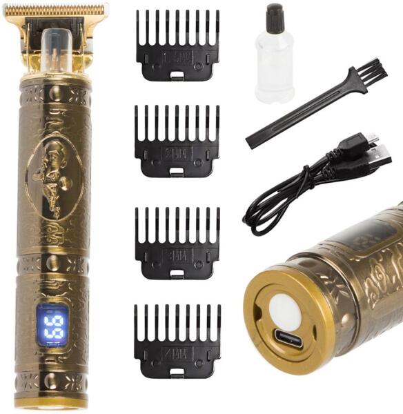 Az elektromos haj- és szakállvágó tökéletes eszköz a gyönyörű frizura létrehozásához és az arcszőrzet ápolásához.  A borotva rozsdamentes acélból készült precíziós fejjel rendelkezik, amely könnyű munkát és egyenletes hajvágást biztosít. Tökéletesen illeszkedik a kézbe, kicsi, így könnyen használható.  Ezen kívül van még 4 cserélhető burkolata 1,5mm, 2mm, 3mm, 4mm.  A borotva beépített akkumulátorral működik, amely lehetővé teszi a borotva hosszú és vezeték nélküli működését.  A készletben található USB kábellel tölthető. A készlet tartalmaz még egy védőkupakot a pengéhez, egy tisztítókefét és olajat a penge kenéséhez és karbantartásához. Kiváló építési minőségMinden hajtípushozSzegélyek és formákRozsdamentes acél pengeTartós házVésés a tokonKis méret4 átfedés: 1,5 mm, 2 mm, 3 m, 4 mmTöltési idő: 3-4 óra (figyelem! az első töltési idő 8 óra)Munkaidő: 160 perc (egyszerre legfeljebb 30 perc)Tápegység: akkumulátorTeljesítmény: 3WTöltés: USB-kábelLED LCD képernyőAkkumulátor töltésjelzőAz USB-kábel hossza: körülbelül 80 cmMéretek: 15,5 cm x 4 cm x 2,5 cmSzín: arany