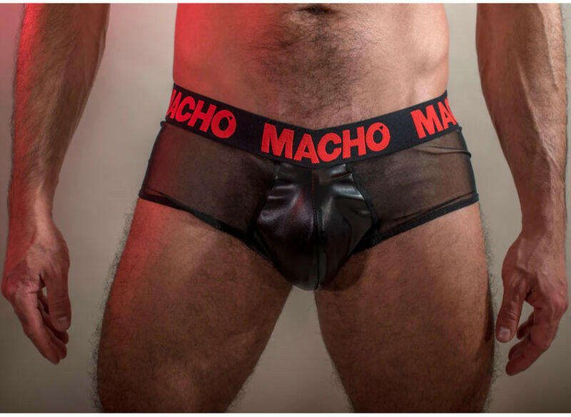 Az új SHADES FETISH kollekcióból származó, nagyon érzéki, a férfiasságot kiemelő, elasztikus műbőr anyagból készült, elülső kosárral ellátott alsónadrág.