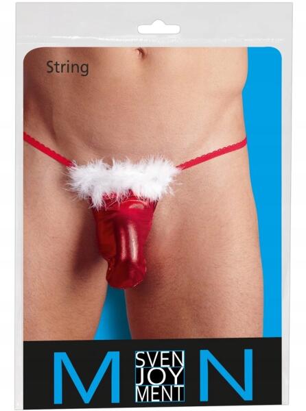 Svenjoyment férfi karácsonyi tanga piros tollakkal S-l (4024144217526)