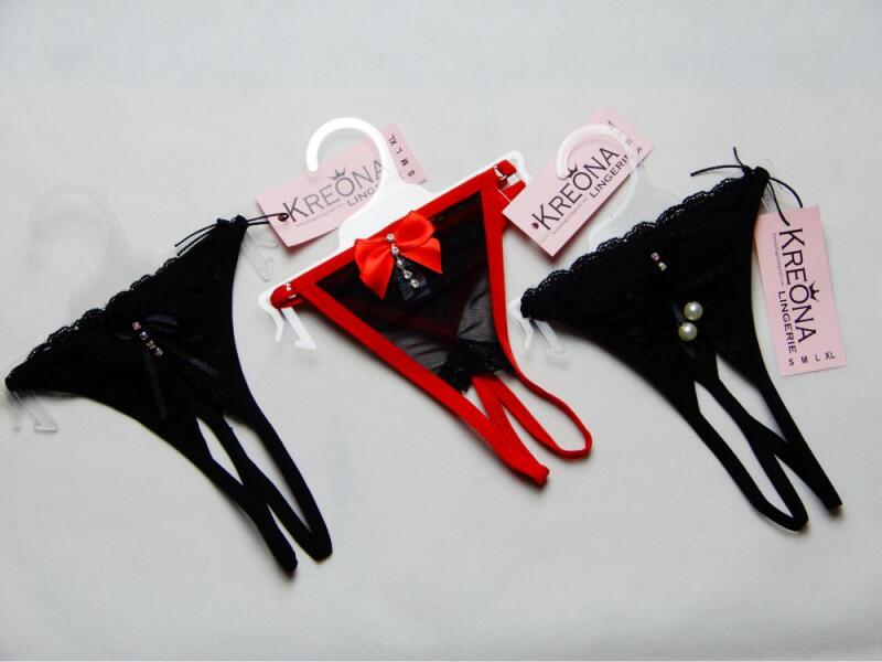 Állítható pántos, méret nélküli elől nyitott strassz köves tanga.