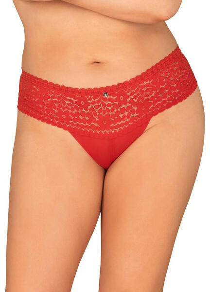 Piros színű, áttetsző csipkés és tüll anyag kombinációjából készült, széles derékpántos alsó.