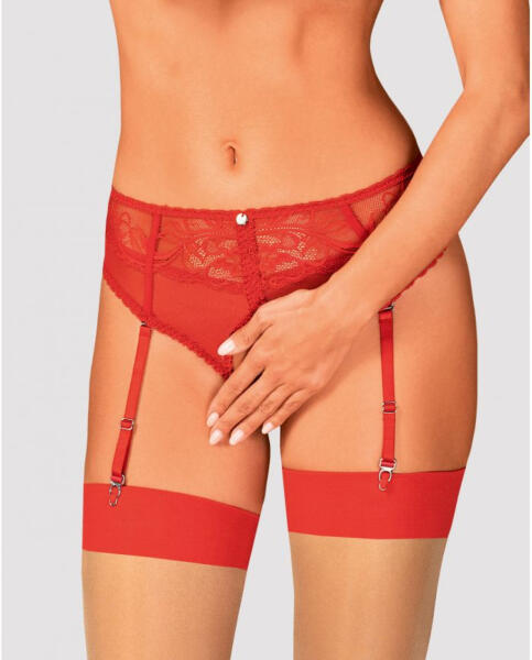 Želite, da bi bil vaš vroč večer še bolj začinjen? Povečajte temperaturo s temi neverjetno seksi hlačkami Obsessive Dagmarie s trakovi za nogavice ! Te seksi hlačke z odprtim mednožjem odlično poudarijo ženske obline in vam bo zagotovilo veliko porednih užitkov! Elegantna čipka in sočna rdeča barva sta greha vredna kombinacija, zato izberite prave nogavice in še danes skočite v objem slastnih občutkov!
