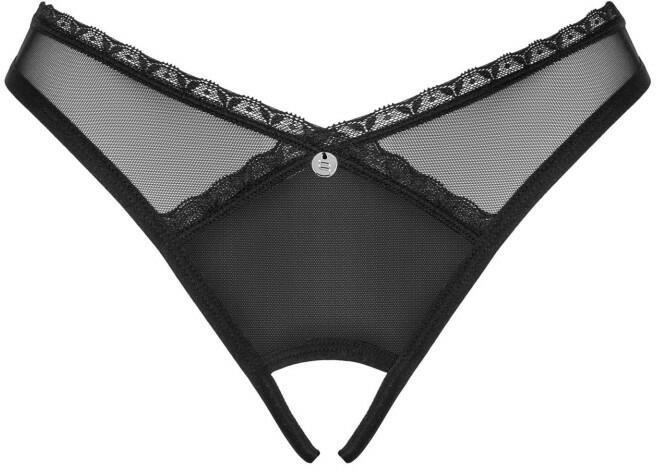 Ezek a fekete tanga bugyik átlátszó anyagok kifinomult kombinációjával és a lépésnél található nyílással, teljes mértékben kiemelik a fenék vonalát . Az elegáns ezüstlánccal kiegészítve ezek a tangák érzéki választást nyújtanak különleges csábító pillanatokra.