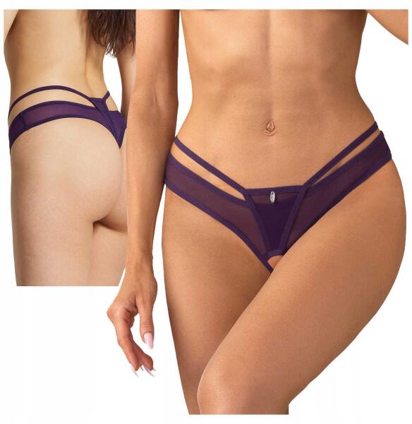Obsessive Női alsónadrág nyitott tanga dekoratív csíkos Vibres purple S/mALLEGRO