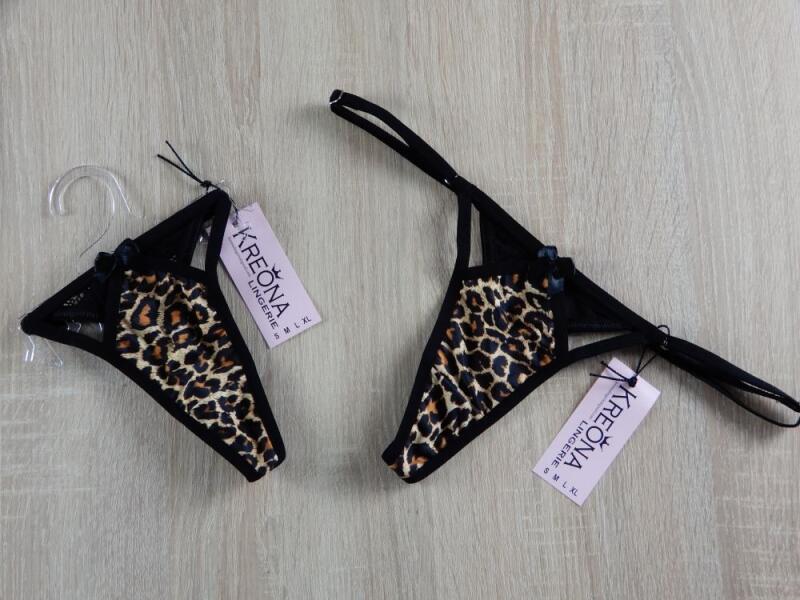 Párduc mintás állitható pántos tanga, kétoldalt kivágott diszitéssel az elején!!