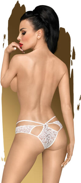 Ezek a finom, ennivaló csipkéből készült, szűk szabású bugyik a fenekét teszik látványossá: A kiváló minőségű anyagok mellett a fehérnemű egyedi kialakításával is pontot szerez. A gyönyörű csipkeminta és a háton található szexi kivágások különösen érzéki megjelenést kölcsönöznek. A játékos masni applikáció és a keresztezett pántos részletek teszik teljessé a dizájnt.