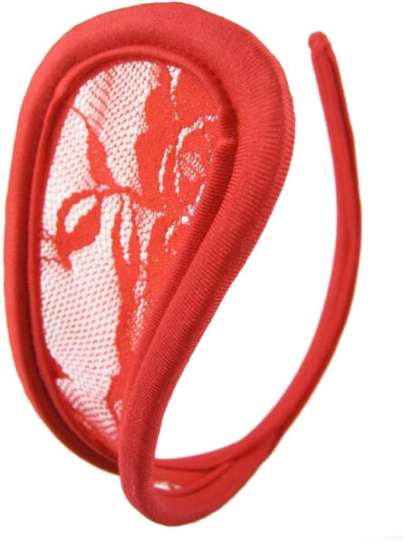 SuperLove Invisible Strapless C String Transparent Floral Lace Red