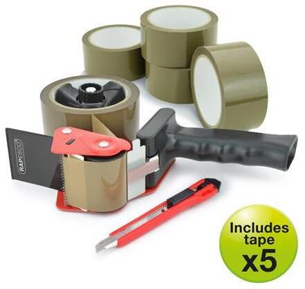 Rapesco Csomagzáró gép, RAPESCO "Germ-Savvy® 960", 5 db barna csomagolószalaggal, 1 db késsel (IR1581) - tintasziget