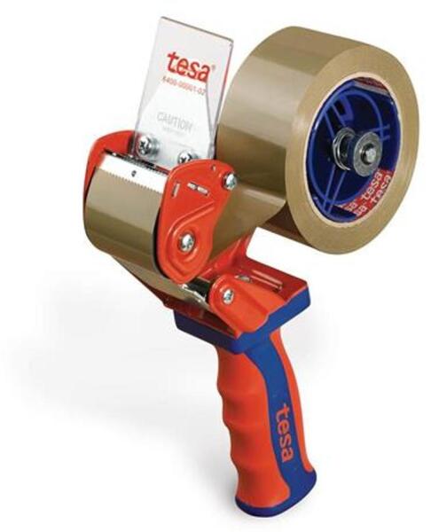 A tesa® 6400 kézi adagoló robusztus ipari eszköz, amely maximum 50 mm szélességű tesa® szalagok adagolására alkalmas. Fedett pengés rendszere speciális sérülésvédelmet kínál (pengevédelem). Ha a vezetőlemezt a szalagra nyomják miközben a fűrészfogas vágópenge "előjön", a szalag levágásra kerül. A folyamatosan szabályozható feszességnek köszönhetően mindig megfelelő adagolást biztosít, még könnyen letekeredő tesa® szalagok esetében is. A tesa® 6400 puha, impregnált fogantyúval rendelkezik, amely kellemes, biztonságos fogást biztosít