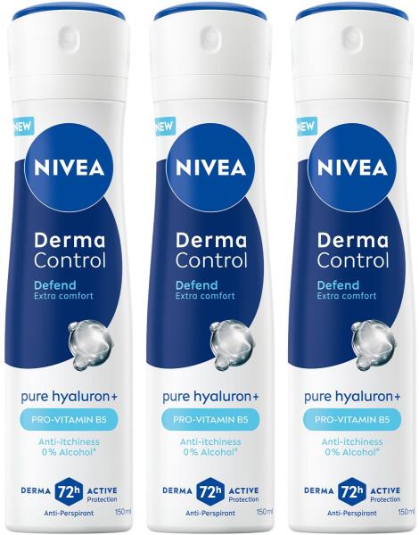 Nivea Csomag: NIVEA Derma Control Defend dezodor spray, 72 órás izzadásgátló védelem, 3x150 ml