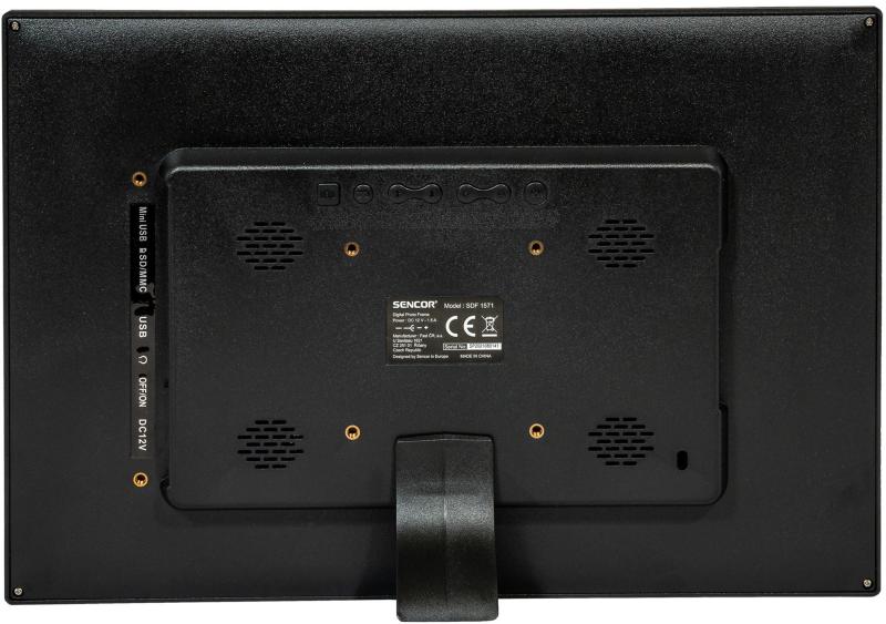Idézze fel a rég elfeledett pillanatokat a Sencor SDF 1571 szélesvásznú digitális képkeretének segítségével. A TFT LED fényképkeret 15,4” azaz 39,0 cm képátlóval rendelkezik, melynek a fényerejét az igényeinek megfelelően állíthatja be. A 16:9 képarány mellett a nagy felbontást is érdemes megemlíteni, ami 1280 x 800 képpontot jelent. A beépített 2x 2W teljesítményű hangszórók segítségével akár videó montázsok vetítésére is kiválóan alkalmas. Az elegáns megjelenésnek köszönhetően kiválóan el tudja foglalni az egyszerű papírképek helyét a lakásban vagy irodában, érdekes dekorációt hozva létre a belső térben. Lehetőség van a 75 x75 mm VESA kompatibilitásnak köszönhetően akár a falra is felszerelni, de asztali állványként is kiváló helyt áll.