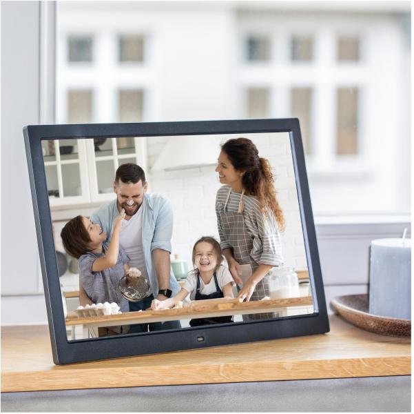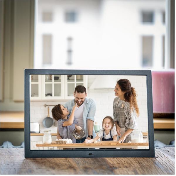 Lehetősége van az adathordozókon szereplő képek fokozatos vetítésének beállítására, ahol teljes mérték személyre szabhatja a vetítési intervallumot. A digitális képkeret felismeri a különböző formátumokat és automatikusan lejátssza a videó és zene fájlokat a fotók megjelenítése mellett. A beépített óra és naptár funkciónak köszönhetően akár digitális naptárként is használható, melynek segítéségével riasztások, időzítéseket tud beállítani. A csomag részét képező távirányítóval szinte minden beállítás könnyedén elvégezhető. A 362 x 244 x 26 mm kompakt mérethez mindössze 1,5 kg súly társul.