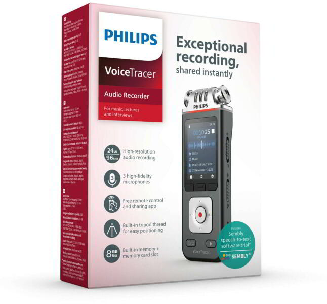 Philips VoiceTracer DVT6115 Digitális Hangrögzítő: Kristálytiszta Felvételek Bárhol ?️ Ez a kompakt és sokoldalú digitális hangrögzítő tökéletes választás interjúkhoz, előadásokhoz, zene rögzítéséhez vagy akár személyes jegyzetek készítéséhez. A kiváló minőségű hangfelvétel garantált a három Hi-Fi mikrofonnak köszönhetően. Kiemelt Jellemzők:Kristálytiszta hangminőség: 24 bit/96 kHz-es felvételi minőség a legapróbb részletek megőrzéséért. ? Három Hi-Fi mikrofon: Precíz és tiszta hangfelvétel minden helyzetben. 8 GB belső memória + microSD bővítés: Akár 88 napnyi folyamatos felvétel, és további 32 GB-tal bővíthető. Kényelmes távoli vezérlés: Ingyenes okostelefonos alkalmazás a könnyű kezelésért. ? Beépített hangszóró: Azonnali visszajátszás a felvételek ellenőrzéséhez. 5 cm-es LCD kijelző: Könnyen leolvasható információk a felvétel állapotáról. Hosszú üzemidő: Akár 36 óra folyamatos felvétel. Kompakt és könnyű: Könnyen hordozható bárhová is mész. MP3 és WMA formátumok: Kompatibilis a legtöbb lejátszóval. Beszéd-szöveg konvertáló szoftver próbaverzió: Könnyen átírhatod a felvételeidet szöveggé. ? Philips minőség: A Philips márka hosszú évek óta garantálja a minőséget és a megbízhatóságot a hangrögzítő eszközök piacán. A DVT6115 is ezt a hagyományt folytatja, ötvözve az innovatív technológiát a felhasználóbarát kialakítással.