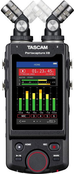 Új generációs, hordozható, 8 sávos digitális audio rögzítő és USB interfész. A Tascam PORTACAPTURE X8 egy új generációs, 8 sávos hordozható hangrögzítő, mellyel mp3 és wav formátumban tudunk SD, SDHC és SDXC kártyákra rögzíteni. XLR bemeneteire külső mikrofonokat csatlakoztatva egyszerre hat sávon tudunk rögzíteni akár egymástól független beállításokkal, plusz egy sztereó L+R csatornát. Saját mikrofonpárjával XY és AB mikrofon karakterisztikák között válthatunk, 3.5 érintőképernyője pedig még kezelhetőbbé teszi elődeinél. 8 be- és 2 kijáratos hangkártyaként is tudjuk használni a Portcapture-t USB kapcsolaton keresztül.
