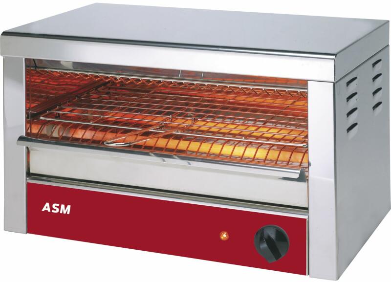Pirítósolvasztásra, pirításra, sütésre, pirítósrarozsdamentes acél kivitelfelső és alsó hő külön kapcsolhatóidőzítő 15 percigmagasság állítható beépített rácszsírfogó tálcavédőráccsal a kvarcsövekhez Modell: TOAST 3, TOAST 6 Magasság: 305, 405 mm Szélesség: 525 mm Mélység: 305 mm Befogadó méret: 2 x 370 x 240, 370 x 240 mm Csatlakozási érték: 1,8 kW / 230 V, 2,7 kW / 230 V Anyag: rozsdamentes acél
