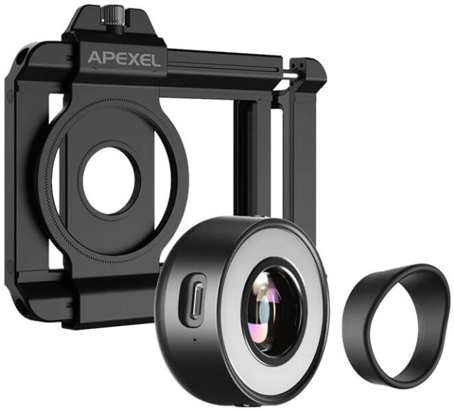 Apexel JeweLens 120X makró lencse Az Apexel APL-MS120 JeweLens 120X lencse egy kiváló minőségű és sokoldalú fényképező kiegészítő, amely lehetővé teszi a felhasználók számára, hogy lenyűgöző, részletes makró felvételeket készítsenek. Az 120X nagyítás, a háromféle fény színmód és a 19 különböző világítási beállítás lehetővé teszi a felhasználók számára, hogy bármilyen környezetben és fényviszonyok között tökéletes képeket készítsenek. Kompatibilitásának köszönhetően széles körben alkalmazható okostelefonokkal, így egy remek eszköz a fotózás szerelmesei számára.